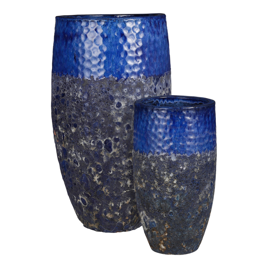 Vulcano pot round blue - h64xd35cm